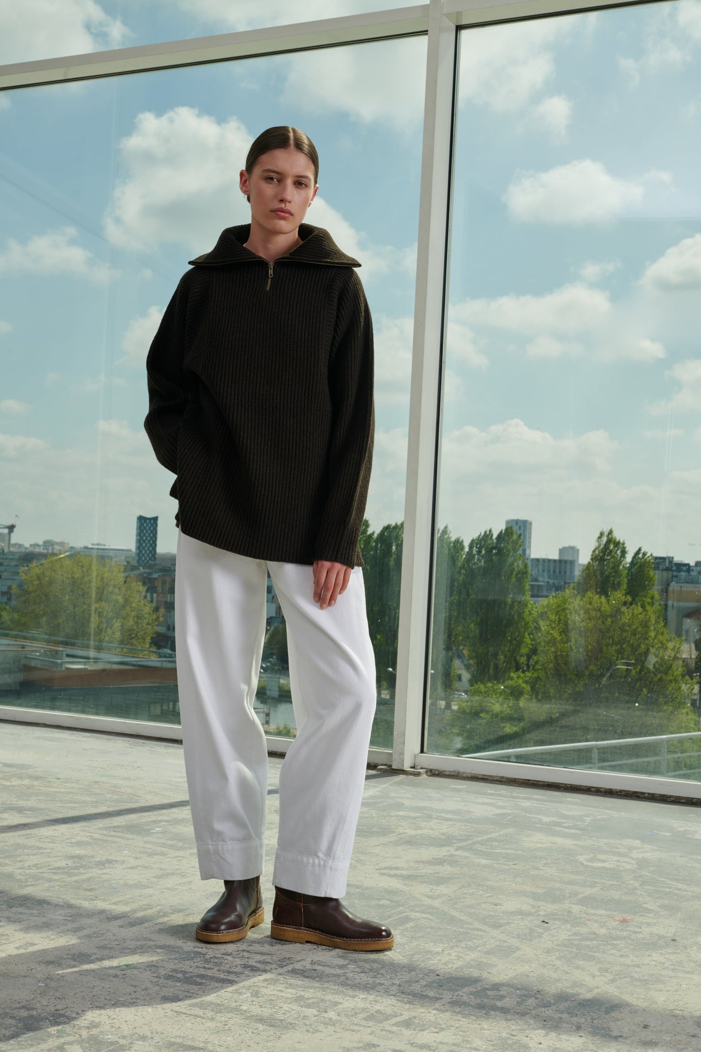 SAUVAGE est une botte en cuir huilé qui se patinera avec le temps. Reprenant à la fois les codes des bottes d'équitation (découpes et surpiqures avant) et des bottes de pluie (forme tube et large), sa semelle épaisse en crêpe apporte une touche d'originalité qui rend cette botte singulière. Sa forme large et droite la rend pratique à enfiler.