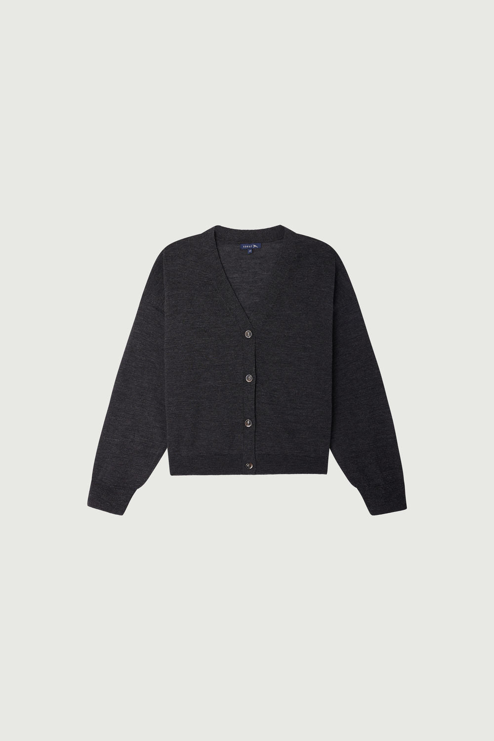 IDEM est un cardigan ample à large encolure en V. Il est tricoté dans une laine mérinos fine à porter à même la peau. Des finitions bord-côtes resserrent le bas de corps et les manches. Les épaules tombantes et les fentes aux côtés apportent une touche moderne à ce gilet faussement classique.