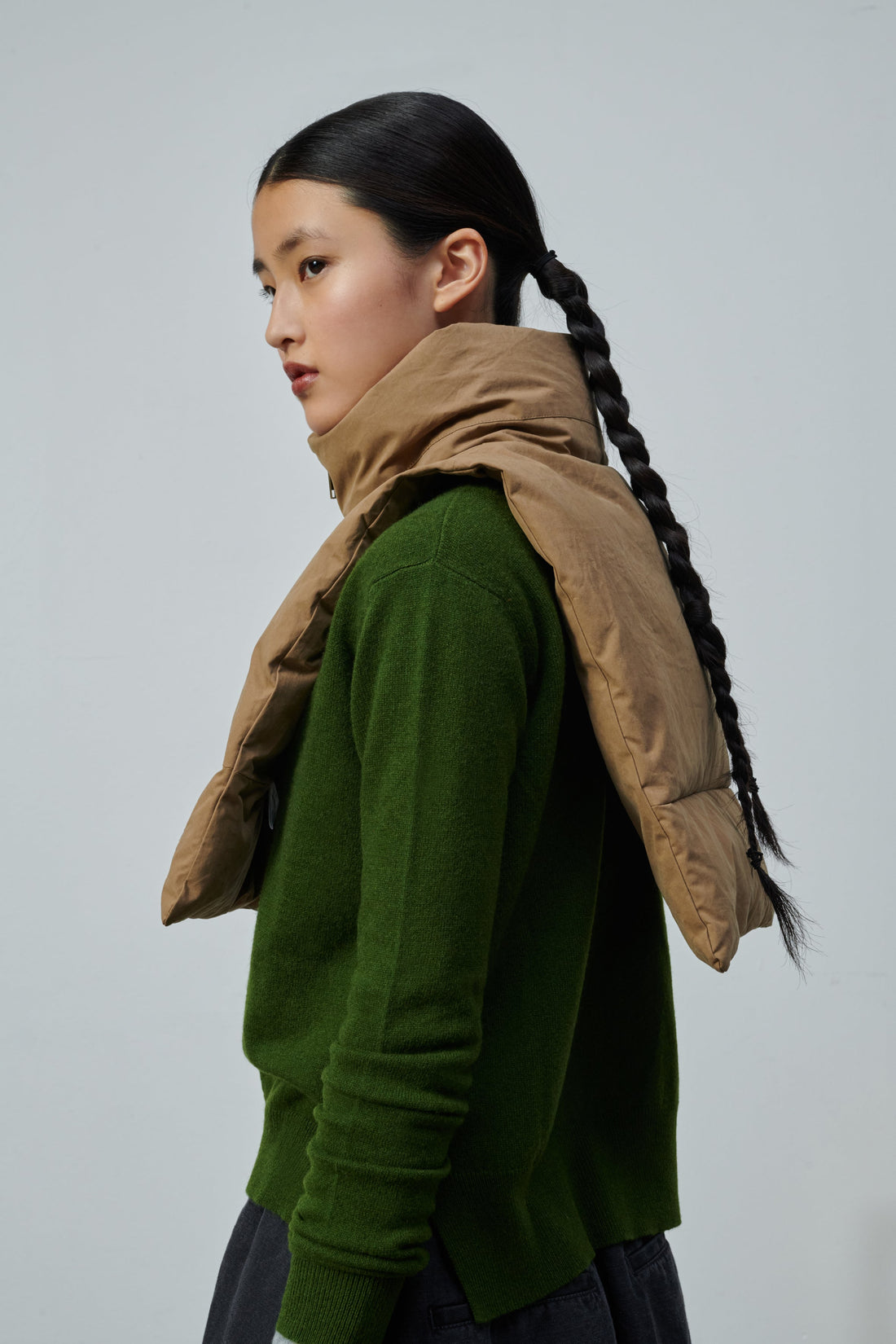 WETHER est un plastron-doudoune qui se zippe autour du cou pour garder bien au chaud. Pourvu d'un matelassage généreusement rembourré, il est ultra confortable.