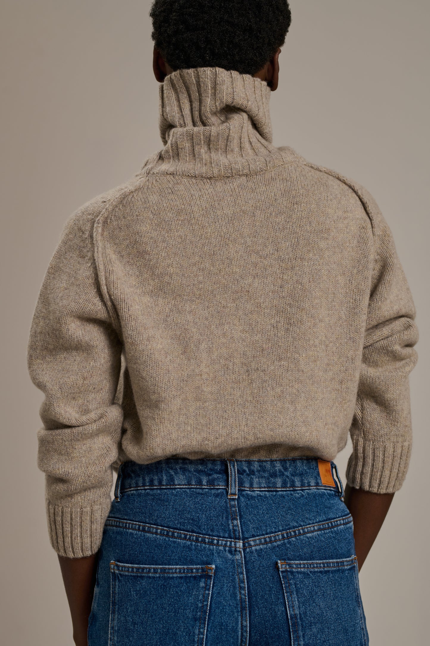 WINDY est un pull col roulé en laine mélangée. Des coutures retournées soulignent l'emmanchure marteau. Son col montant à côtes a été volontairement allongé pour lui donner une allure singulière. Possibilité de roulotter ou de plier le col selon les envies. Son volume court et près du corps permettra de le glisser facilement dans un pantalon.