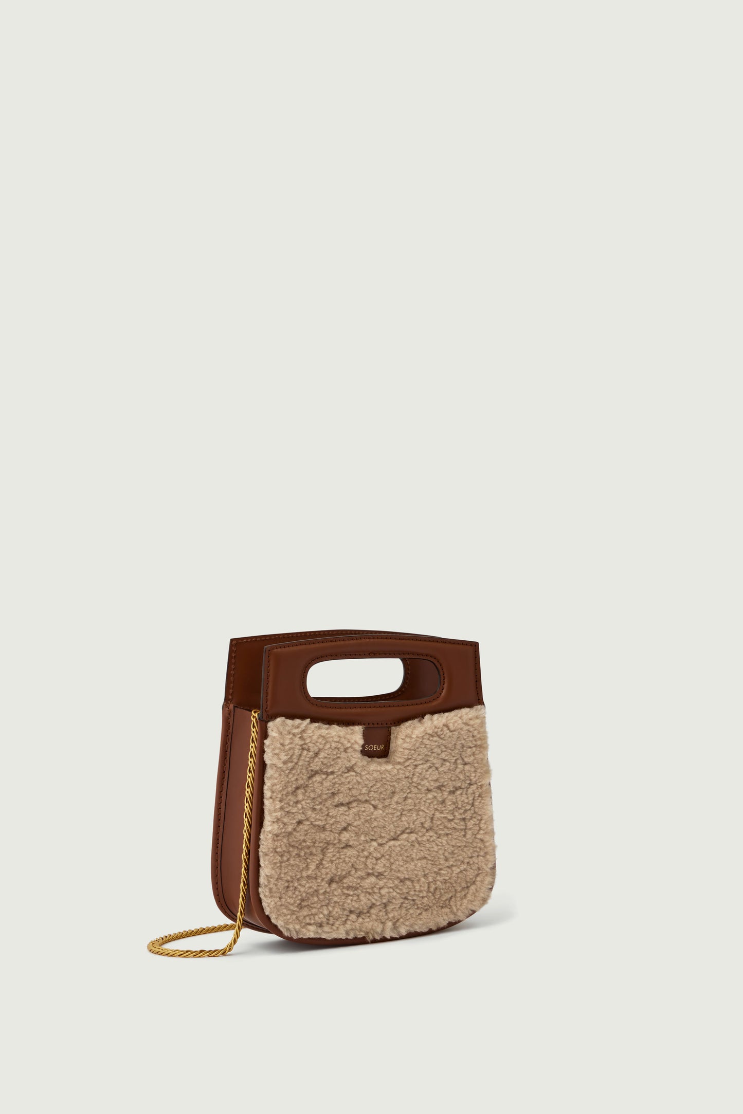 sac cheri mini Petit sac en cuir lisse naturel et shearling sable