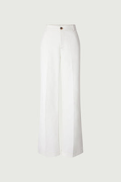 IDA est un top bustier à la ligne minimaliste, confectionné dans une laine-viscose flammée fluide. Son volume épuré révèle une élégance naturelle, soulignée par la brillance discrète et les irrégularités subtiles de la matière. Il s'associe à une veste de costume portée avec un foulard en soie ou un beau bijou qui illumine l'ensemble.